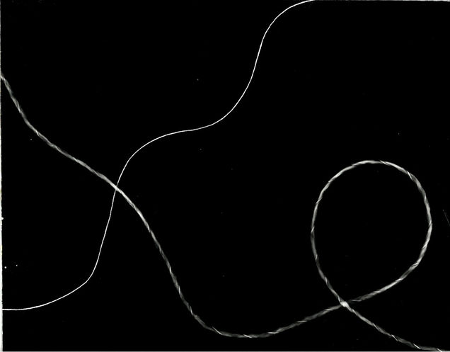 For my developments, I worked in the darkroom and used two different pieces of string to create swirls which look similar to the trails of light shown within my photos. I exposed them to light for 10 seconds.